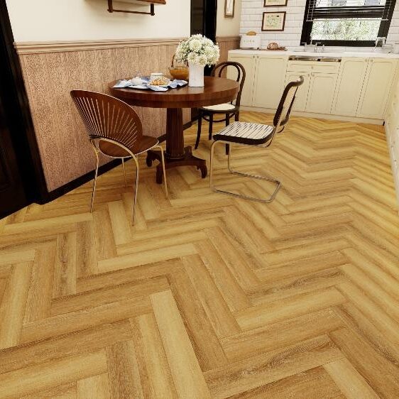 Ламинат SPC Aspenfloor Resort Давос — это прочное кварцвиниловое напольное покрытие, которое имеет эффект натурального дерева и укладку «ёлочка». Сочетание прочности камня, внешней привлекательности дерева и 100% водостойкости делают его идеальным для укладки в любых внутренних помещениях.